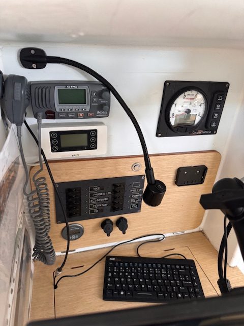 Electronique NKE haut de gamme, pilote gyro, énergie optimisée (Victron, pile à combustible, Starlink).